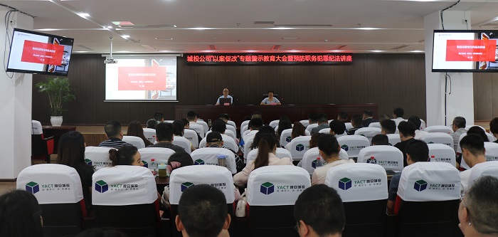 為深入推進(jìn)公司黨風(fēng)廉政建設(shè)和反腐敗工作,切實(shí)增強(qiáng)全體干部職工的法律意識與廉潔風(fēng)險防控能力,筑牢拒腐防變的思想防線,9月11日,城投公司組織召開“以案促改”專題警示教育大會,邀請四川發(fā)現(xiàn)(雅安)律師事務(wù)所專職律師代陽作預(yù)防職務(wù)犯罪專題紀(jì)法講座。公司黨委委員、紀(jì)委書記陳柯潔主持會議并講話,在家黨委班子成員出席會議。